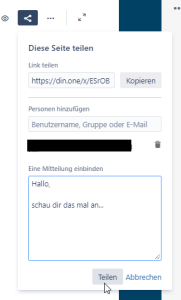 Mit einem Klick auf "Teilen" wird der Link per E-Mail an die betreffenden Person versandt.