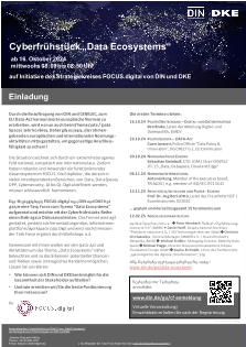Der Strategiekreis FOCUS.digital von DIN und DKE hat daher eine Task Force zum Thema "Data Ecosystems" aufgesetzt und möchte mit der Cyberfrühstücks-Reihe einen Beitrag zur Diskussion und daraus möglichen strategischen Ableitungen für DIN und DKE wie für die deutschen Stakeholder leisten.
